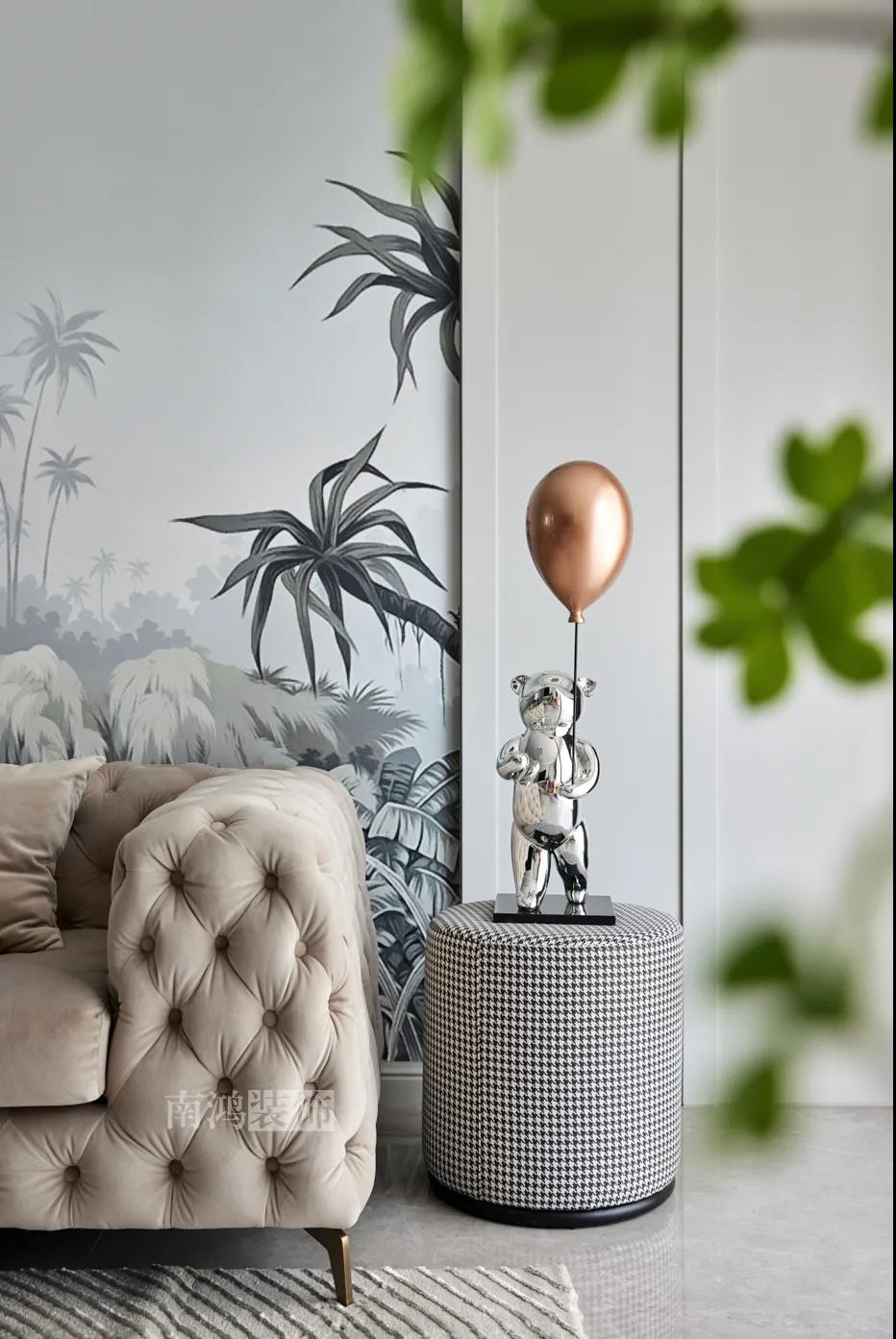 客廳以高級灰為主基調,低飽和度的特性使得它具備很強的包容性。