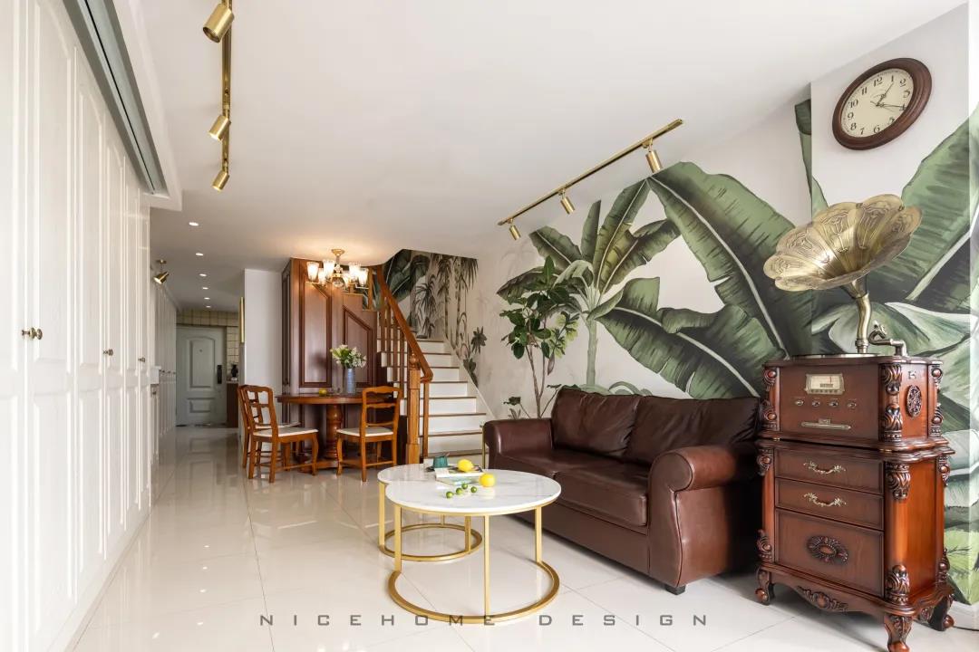 基于女主人的喜好,本案在空間中融入了大量復古元素,帶來賞心悅目的精致格調,清雅復古的綠與渾厚的棕色系家具碰撞,傳遞出無法抗拒的優雅與質感。