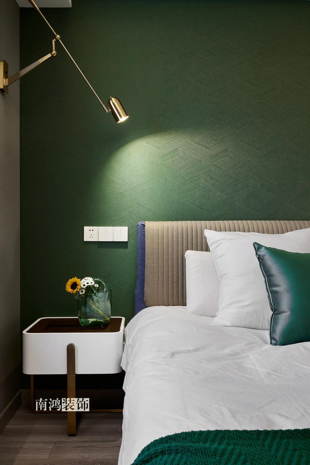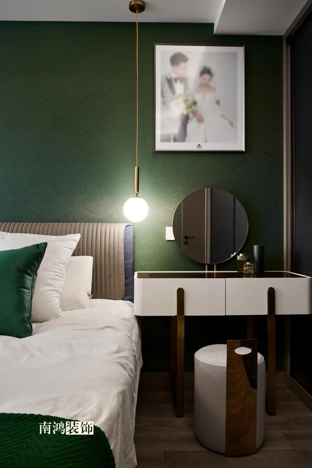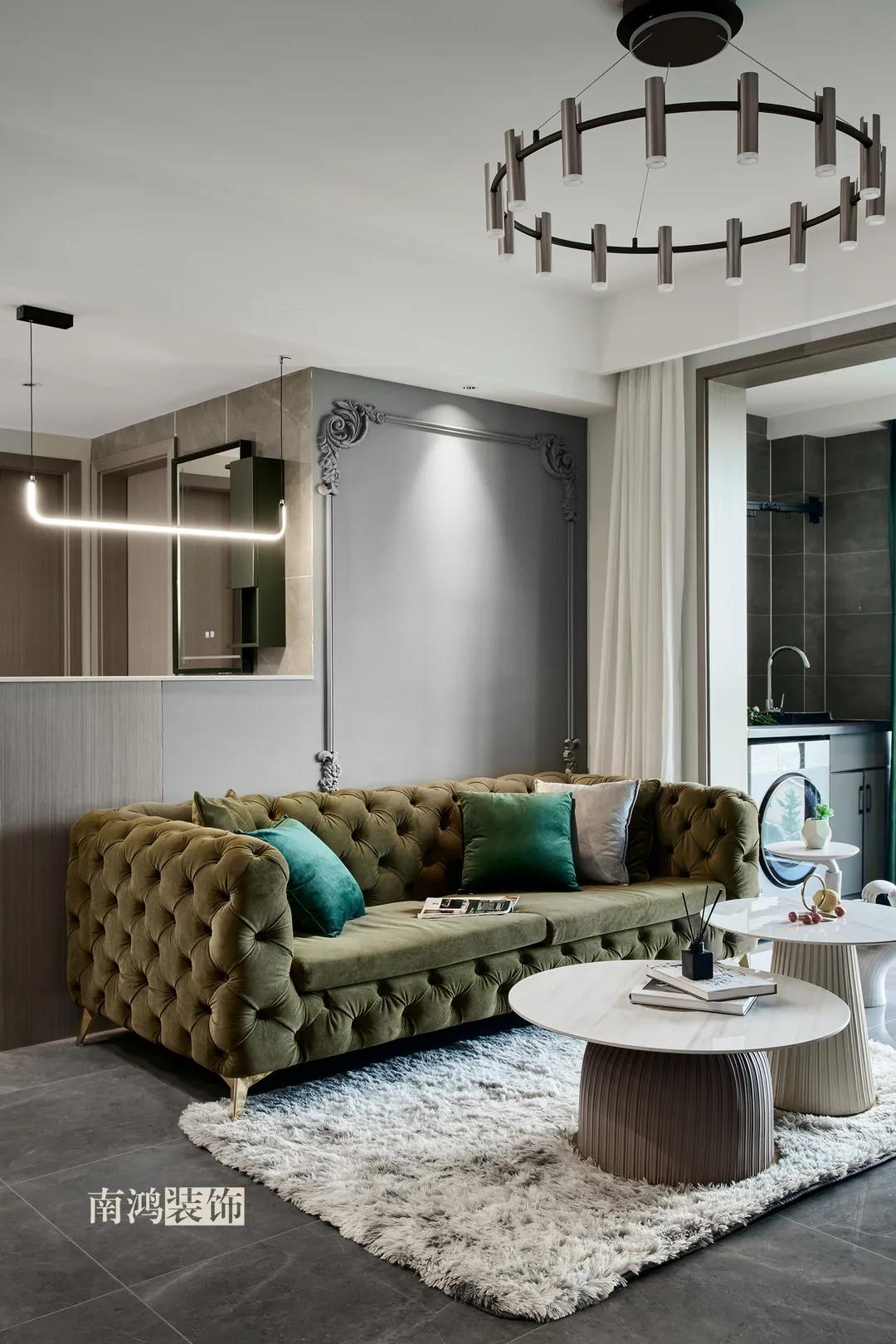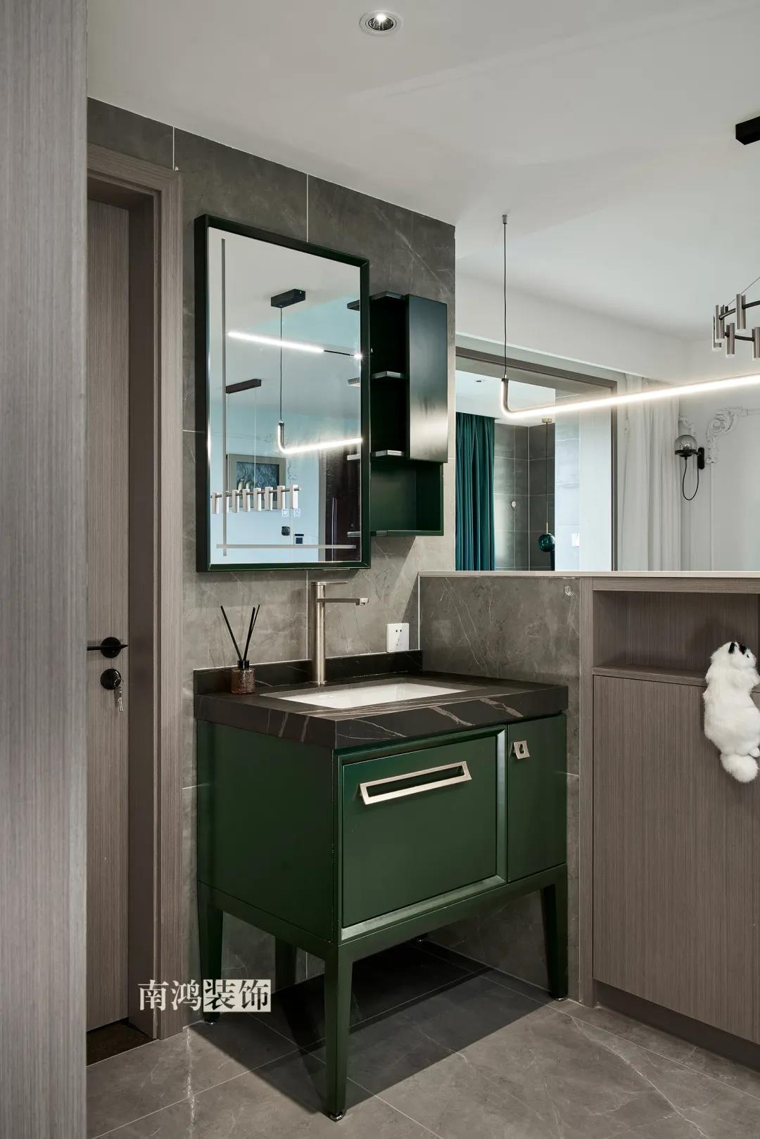 【項目·信息】 地址 / 世貿(mào)西西湖 戶型 / 三室兩廳 面積 / 91㎡ 風格 / 現(xiàn)代法式 設計施工 / 浙江南鴻裝飾 本案為91㎡現(xiàn)代法式風格作品。現(xiàn)代法式摒棄傳統(tǒng)法式繁復、冗雜的裝飾造型與甜膩的色澤,通過淡雅的色調(diào),簡潔的幾何線條和典雅時尚的陳設軟裝,來打造更符合現(xiàn)代人喜好的生活空間。 業(yè)主夫妻倆,一位是性格沉悶的工程男,一位是熱情開朗的設計女,彼此志趣相投,性格互補,優(yōu)雅的法式,給這個甜蜜小家庭增添了更多美妙情趣~ ▲原始結(jié)構圖 ▲平面設計圖 ①衛(wèi)生間做干濕分離。 ②兒童房的門洞方向更改,完整電視背景墻效果。 ③主臥和次臥交換位置,次臥陽臺打通。 ④縮小主衛(wèi)面積,墻體后退得以嵌入一個大衣柜。 入戶門進來即見餐廳。戶型面積不大,公區(qū)域都盡量打開讓視野更開闊。 硬裝整體簡潔,墻面可見石膏線花紋裝飾,借此強化一定法式空間意象。餐桌椅、吊燈的造型選擇也都偏現(xiàn)代,空間中奢與簡的分寸把握得恰到好處。 綠色作為本案的點綴色,可以說貫穿了幾乎各個分區(qū)之中,鮮活的生命力讓人過目難忘。 客餐廳一體式設計是小戶型的常見選擇,也更符合現(xiàn)代人的生活習慣。灰白主色保持整體低調(diào),局部墻面以飽和度高的綠色乳膠漆涂刷,空間被提亮不少。 客廳采光良好,沙發(fā)背景墻連接干區(qū)的位置做一個小的半高柜,提升空間利用率。軟裝家具布置則用簡潔的設計手法將法式的古典優(yōu)雅和現(xiàn)代的簡約時尚相結(jié)合,使得空間既有休閑感受,又不乏藝術氣息。 經(jīng)過設計調(diào)整,電視背景墻的效果更加完整,深淺色調(diào)做左右兩塊分界,以石膏線裝飾則更顯精致。 拱形門洞也被應用在這里,作為歷史悠遠的一種經(jīng)典建筑元素,本身就很契合各種帶古典意味的家居風格。 廚房以長虹玻璃門隔絕油煙,保證內(nèi)部的私密性,也實現(xiàn)了采光的通透感。冰箱被移至過道,釋放內(nèi)部更多空間。 廚房采用U型布局,動線流暢,烹飪區(qū)、操作臺和洗滌區(qū)都有各自獨立的空間,互不打擾。 主臥,青草綠墻布做背景裝飾,留白保持簡約調(diào)性,一幅婚紗照訴說著夫妻二人簡簡單單、明明白白的甜蜜愛情故事。 光源除主燈外,床頭兩側(cè)各有布置,一邊長臂燈一邊吊燈的不對稱設計,讓臥室空間顯得更加有趣,金屬材質(zhì)呈現(xiàn)輕奢美感。 長輩房的背景、色彩選擇需要貼合老人的喜好,選用橙色主色,帶來如陽光般的燦爛、溫暖感受。 夫妻二人目前還沒有孩子,這個房間預備做以后的兒童房,布置相對簡單,方便將來調(diào)整。 衛(wèi)生間將干濕區(qū)域分離,洗漱臺盆柜、壁柜與旁邊打造出的半高柜體可將瓶瓶罐罐都收入其中,保證視覺上的清爽。