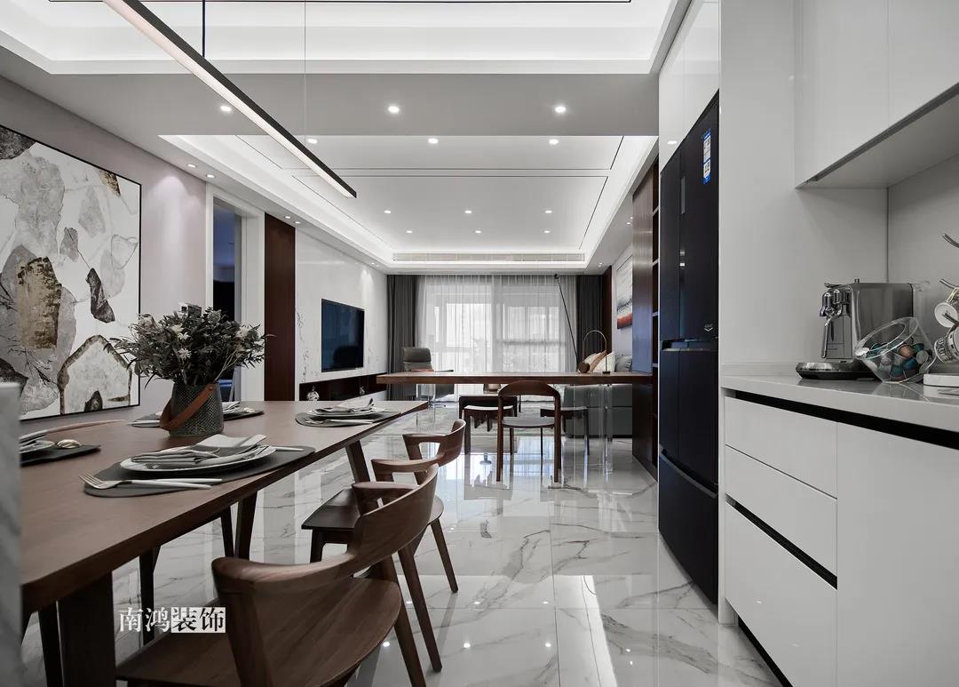 192㎡三室兩廳,胡桃木引領(lǐng)潮流,開放式餐廚是真的香!